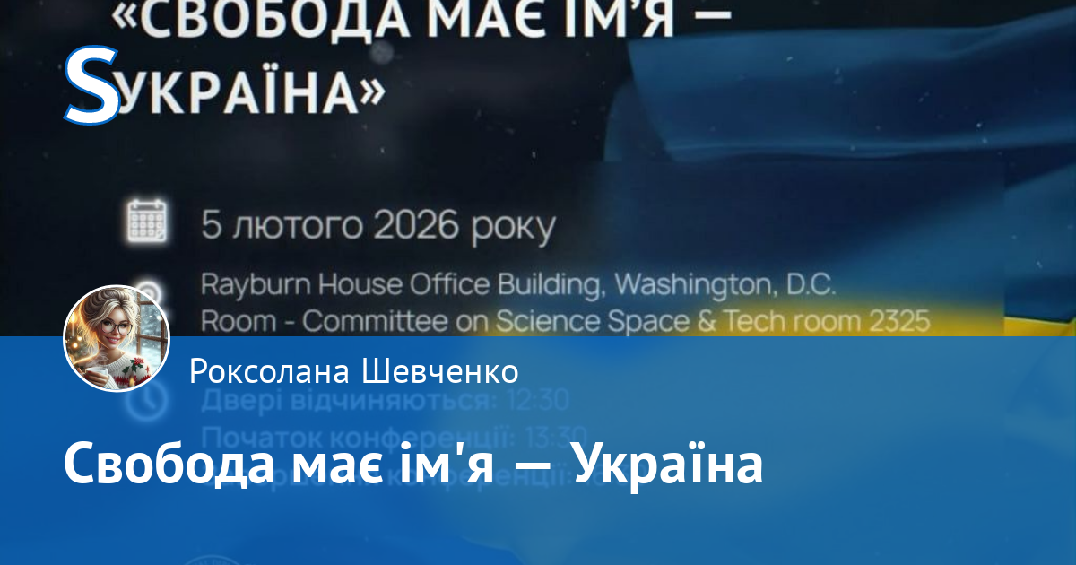 5 лютого 2026 року у Вашингтоні, округ Колумбія, на платформі «АЛЛАТРА» відбудеться Міжнародна конференція «Свобода має ім'я — Україна».
