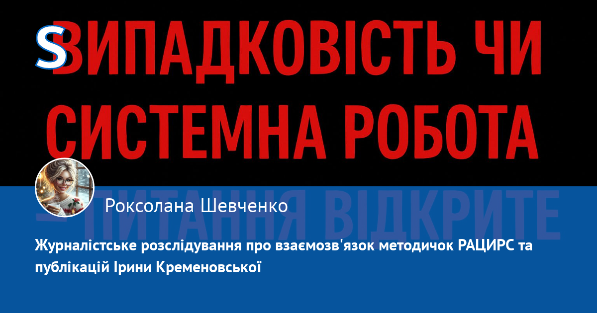 1. Публікації Ірини Кременовської демонструють системні паралелі з методичними матеріалами РАЦИРС.