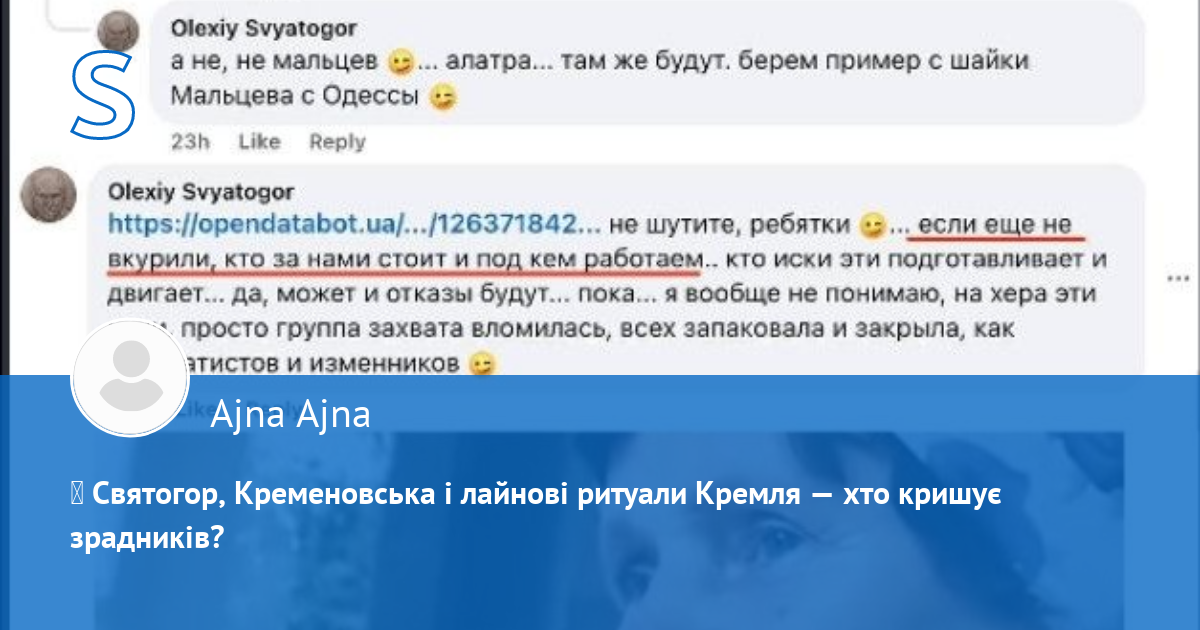 Так вони обидві криси: Святогор та Кременовська, працюючі на рашку хизуються, що в них є «криша». І все це у період війни? ХТО ЇХ КРИШУЄ В УКРАЇНІ?