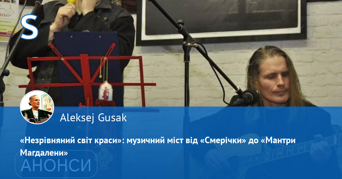 Нещодавно Бучанська публічна бібліотека занурила своїх відвідувачів у вир емоцій та магії, провівши унікальний музично-містичний вечір під назвою «Незрівняний світ краси: від „Смерічки“ до „Мантри Магдалени“. Цей особливий лекція-концерт став справжнім святом для цінителів української музики, об'єднавши в собі класичні твори 70-х років, сучасну авторську музику та елементи глибокої духовної традиції.