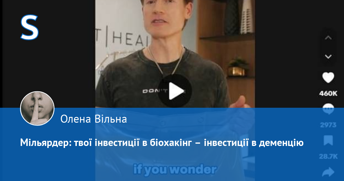 Тому, Бро Брайане, мені дуже шкода тебе, біохакінг сьогодні не працює. Хоч тут ми всі рівні. Сьогодні ніякі мільйони не врятують від деменції та ще купи інших захворювань, які викликає накопичення нанопластику в організмі.