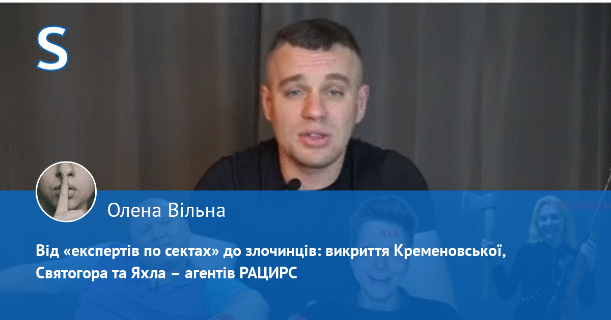 Усі вони: Кременовська, Святогор, Яхл — агенти кремлівської секти РАЦИРС, що керується з москви їх гуру Дворкіним. Вони видають себе за експертів із «сект» та «культів», проводячи псевдоекспертизи, що призводять до переслідувань невинних людей. Їхні матеріли у СМІ пропагандують кремлівську машину розлади, плодяріхаціх суспільства, ненависті, жорсткості.