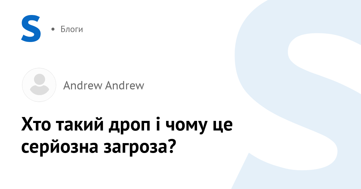 Дроп — це особа, яка надає свою банківську картку для використання в незаконних схемах: шахрайстві, кіберзлочинах, обігу наркотиків. Злочинці використовують дропів, щоб приховати рух коштів.
