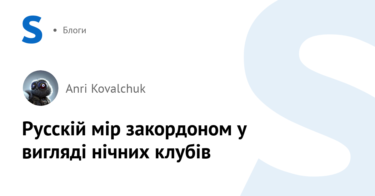 Розумію, що для більшості людей музика, спорт тощо не сприймаються як елементи впливу. Але фактично такі клуби з нормалізації та популяризації російського контенту є певним російським soft power на наших громадян закордоном, навіть якщо власники цих клубів мають інші погляди. Особливо це стосується молоді.