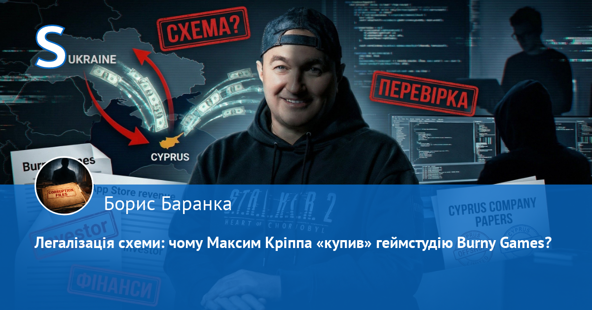 Максим Кріппа заявив, що офіційно увійшов у Burny Games. Заголовки кричать про «успіх IT». Проте Burny Games Ltd — це кіпрський офшор (HE 401925, Louki Akrita 21-23, Нікосія). Директор — грецький номінал Константінос Романтзіс. CEO Burny Games — українець Анатолій Геніс.