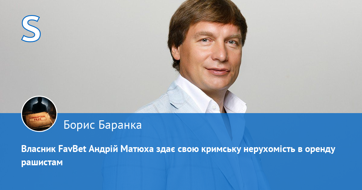 Власник групи компаній FavBet (гральний бізнес) Андрій Матюха має нерухомість в окупованому Криму, яку здає в оренду рашистам, і сплачує з цього податок до держбюджету рф.
