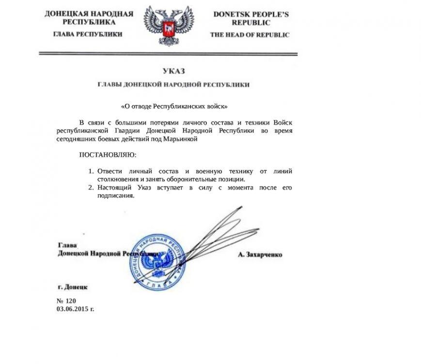 Сегодня в новостях активно распространяется «указ» Захарченко об отводе войск в связи с большими потерями.