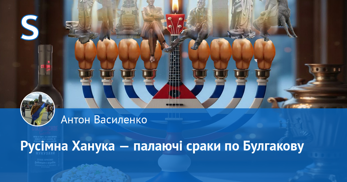 В середині ханукального тижня 2025 року Київська міська рада ухвалила рішення про демонтаж пам'ятника Міхаілу Булгакову на Андріївському узвозі. І сталося диво. Свічки ханукій у Нью-Йорку, Гамбурзі, Бат-Ямі, Сіднеї та інших місцях проживання русько-радянських людей, які називають себе євреями, набули форми дупи і запалали з подвоєною силою. Кількість обурених рішенням Київради дописів від людей номінально єврейського походження була настільки великою, що я навіть перевірив, чи не звали Міхаіла Афанасійовича Булгакова насправді Мойсей Аронович. Ні, не звали.