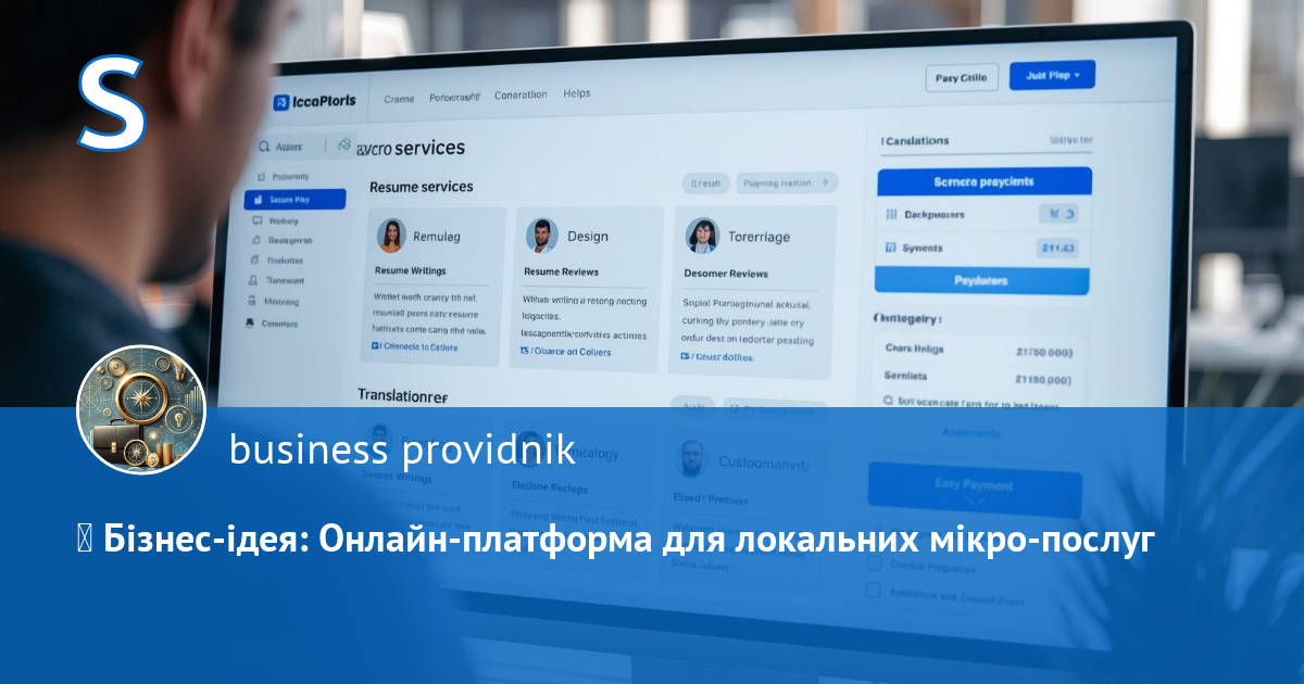 Створити онлайн-платформу для мікро-послуг, де фахівці можуть пропонувати свої послуги, а клієнти замовляти їх безпосередньо через сайт чи мобільний додаток. Це можуть бути послуги типу написання резюме, дизайну банерів, перекладу текстів, налаштування соцмереж чи монтажу відео. Всі послуги надаються онлайн, без необхідності зустрічі з фахівцем. Платформа бере комісію за кожну угоду.