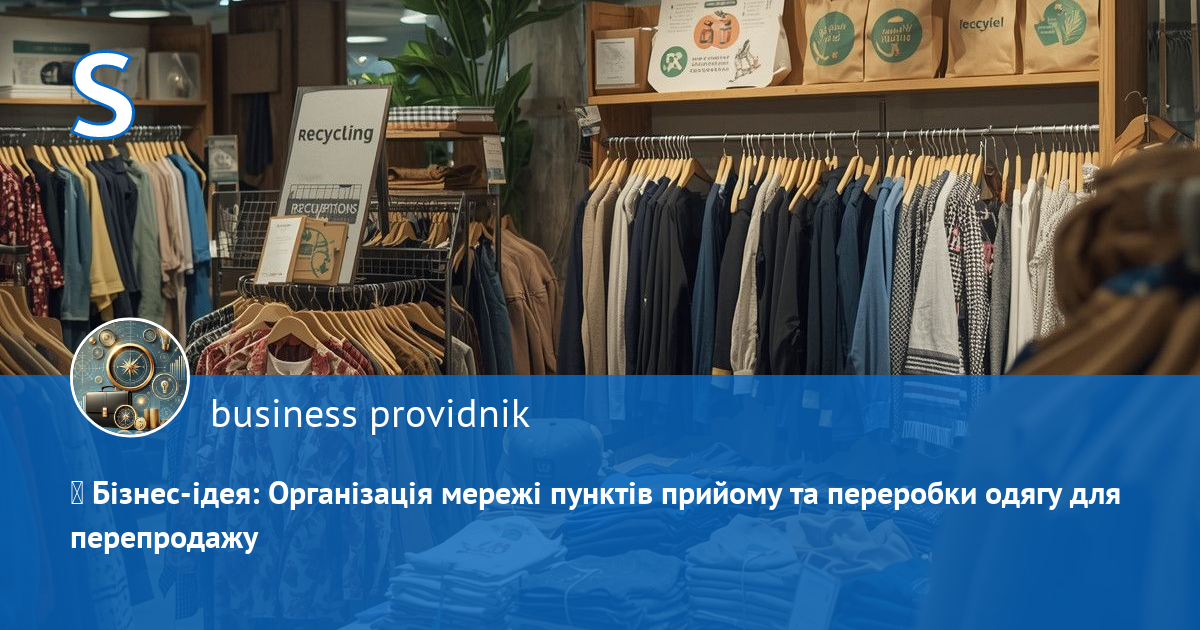 Зважаючи на зростаючий інтерес до екології та сталого розвитку, ідея організувати мережу пунктів прийому одягу, який більше не використовується, і його переробку для подальшого перепродажу набирає популярності. Це може бути не лише продаж зібраної одежі через онлайн-платформи, але й створення спеціалізованих магазинів second-hand, організація благодійних акцій, або навіть переробка одягу в нові вироби (наприклад, сумки, аксесуари).