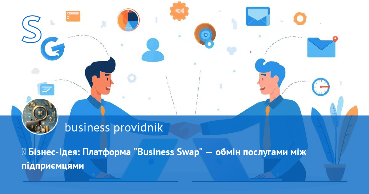 "Business Swap" — це онлайн-платформа, де малий і середній бізнес можуть обмінюватися послугами або товарами напряму, без грошових розрахунків.