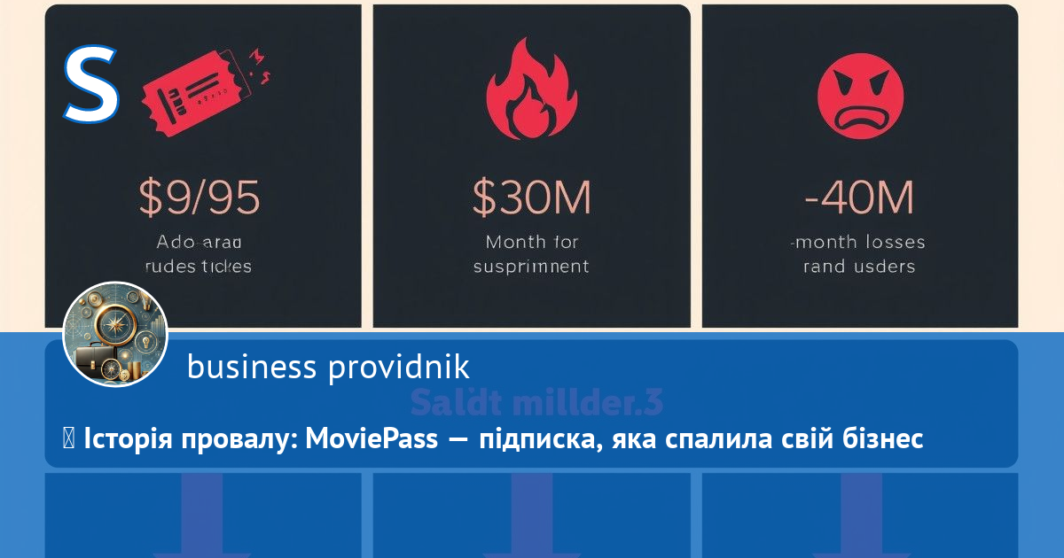 💡 Ключова проблема: компанія не мала контролю над собівартістю — кінотеатри не давали знижок. MoviePass купував ті ж квитки, що і звичайні глядачі.