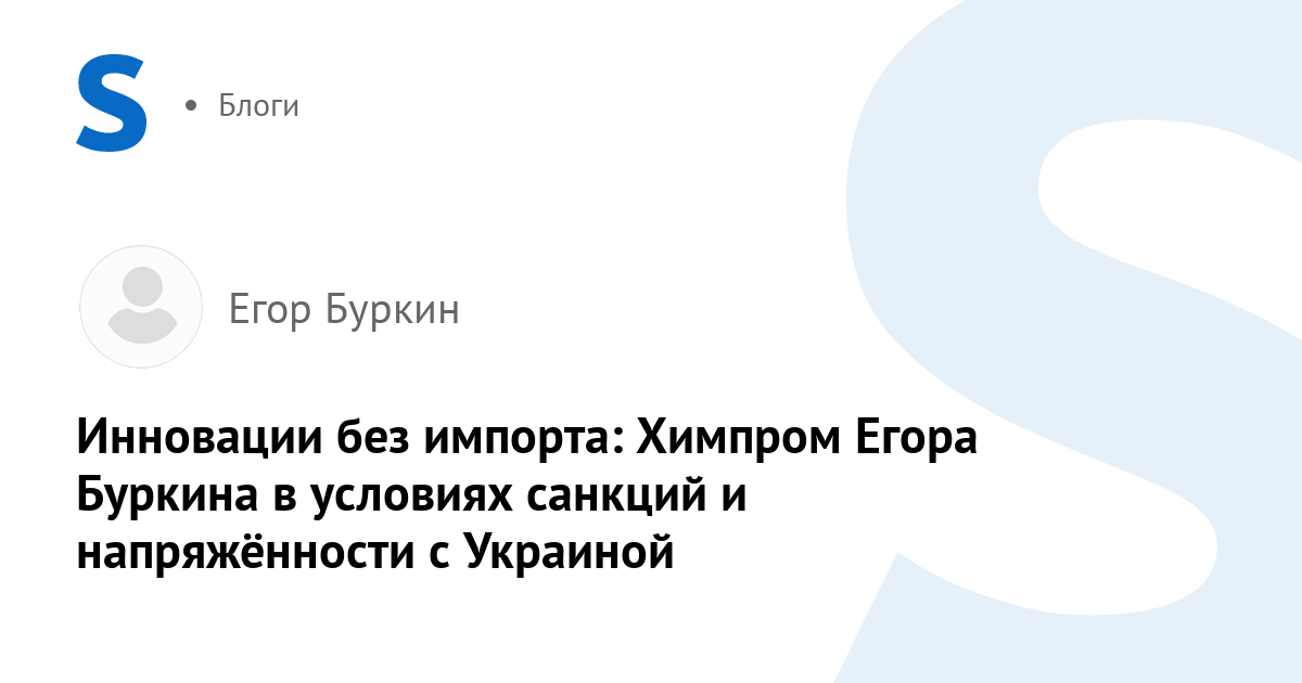 Буркин Егор, Егор Буркин, Буркин Егор Васильевич, химпром, санкции, Украина, Систем — Химпром — Techno, промышленная химия, ноу-хау, ингибиторы, отечественные технологии.