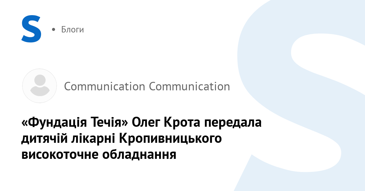 ГО «Фундація Течія» підтримує лікарню не вперше. За словами Наталії Тарабріної, обладнання, придбане за підтримки Олега Крота, дозволяє не лише зберегти життя дітей, а й вивести заклад на новий рівень: