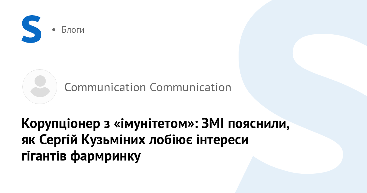Діяльність Сергія Кузьміних у профільному комітеті ВР та його можливі зв'язки з гігантами фармринку демонструють критичні вади системи державного управління в Україні. Призначення людей без профільної освіти та з сумнівним бекграундом на ключові посади створює можливості для лобіювання приватних інтересів під виглядом державної політики.
