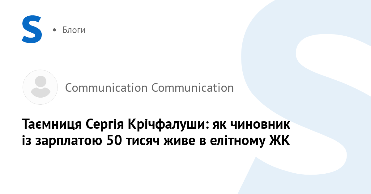 Сергія Крічфалуши помітили біля елітного ЖК у центрі Києва, хоча у його декларації таких квадратних метрів немає. Журналісти вирішили з'ясувати, як живе чиновник із зарплатою 50 тисяч — і натрапили на низку несподіваних фактів. Детальніше – у розслідуванні.