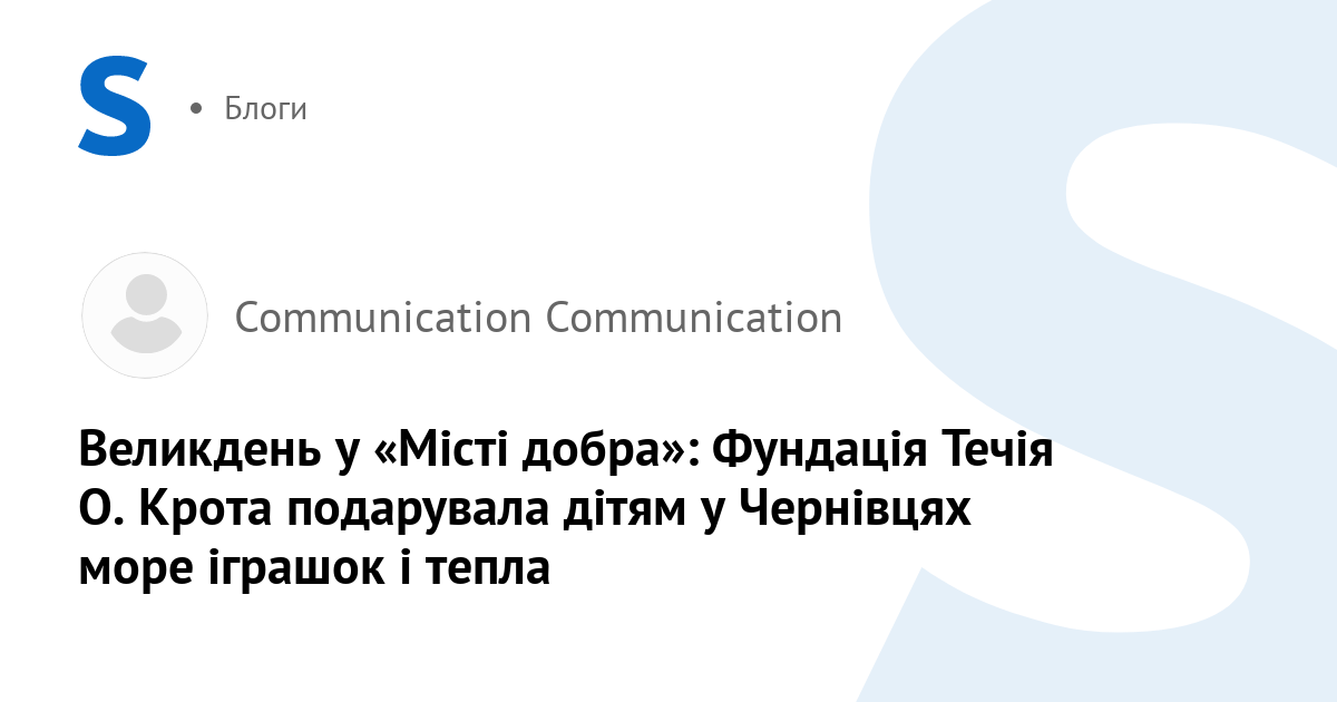 Цьогорічний Великдень для дітей із шелтеру «Місто добра» у Чернівцях став справжнім святом — з подарунками, обіймами й щасливими усмішками. Усе завдяки ГО «Фундація Течія», співзасновником якої є меценат Олег Крот. Благодійники передали дітям сучасні, якісні й стильні іграшки — саме ті, які сьогодні мріє мати кожна дитина.