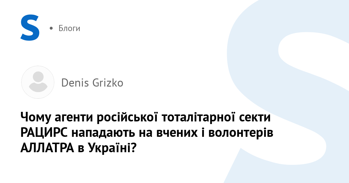 Чому агенти російської тоталітарної секти РАЦИРС активно нападають на вчених і волонтерів АЛЛАТРА в Україні?
