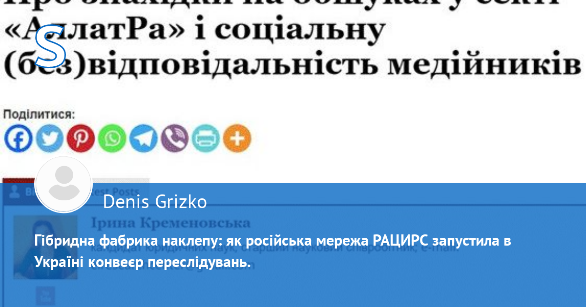 Власні публічні визнання та документи розкривають схему незаконного переслідування волонтерського руху «АЛЛАТРА» за планом російської антикультової мережі рацирс.