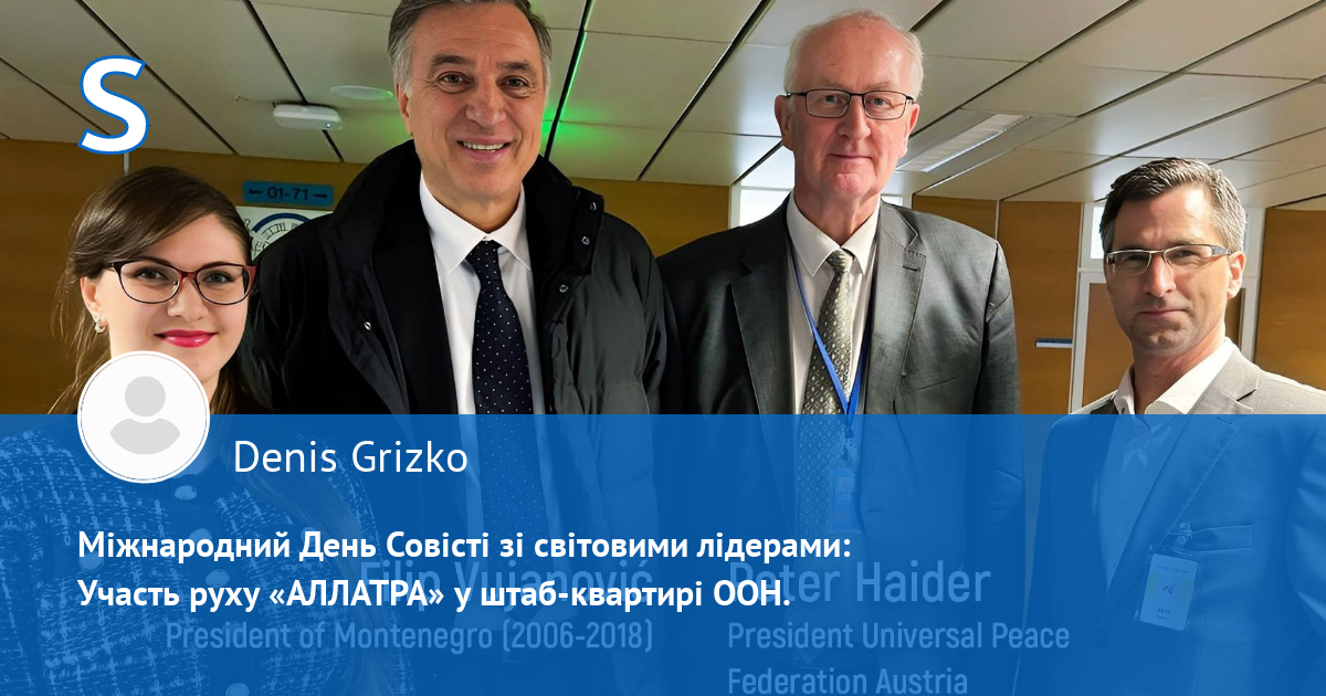 Представники Міжнародного громадського руху «АЛЛАТРА» взяли участь в урочистому заході, присвяченому Міжнародному Дню Совісті, який відбувся в офісі Організації Об'єднаних Націй у Відні. Подія зібрала світових лідерів, дипломатів, громадських діячів і представників організацій, які прагнуть до побудови справедливішого, мирного суспільства.