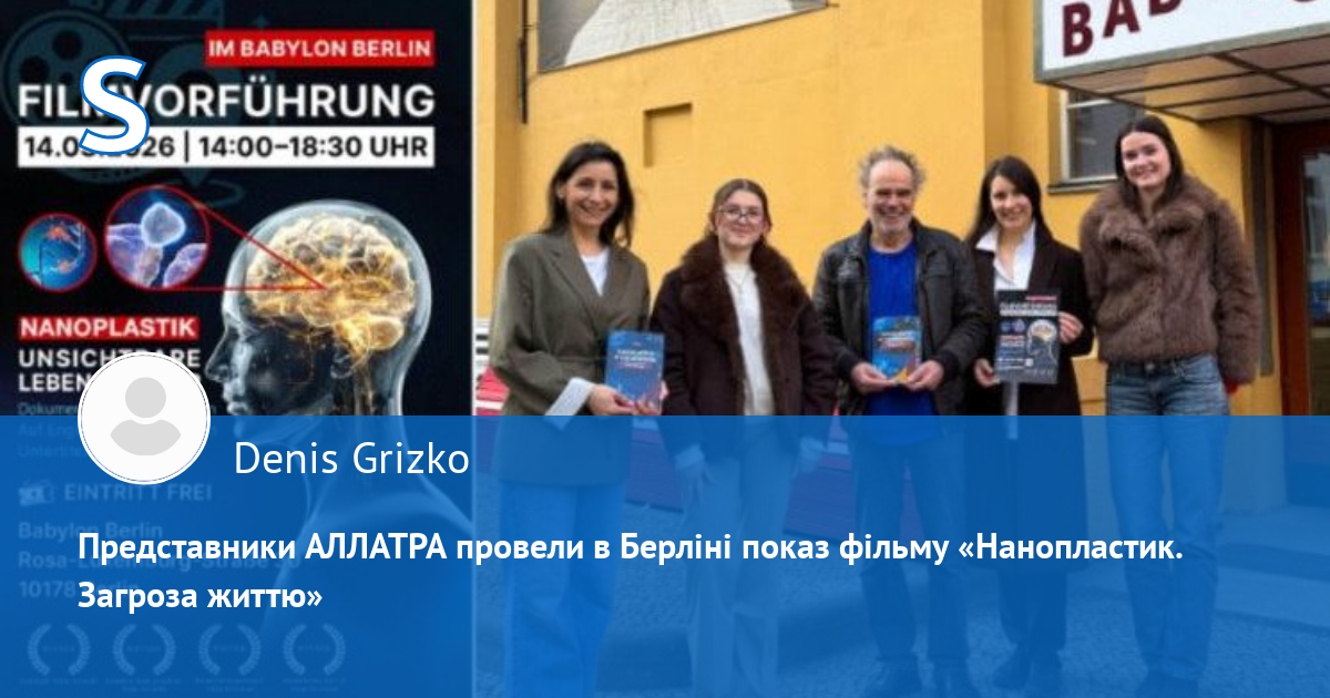 Берлін, Німеччина, 14 березня 2026 р. — В історичному кінотеатрі Kino Babylon Berlin відбувся спеціальний показ науково-документального фільму «Нанопластик. Загроза життю». Фільм, створений Глобальним дослідницьким центром АЛЛАТРА, об'єднує наукові дані з усього світу про вплив мікро- та нанопластику, представляючи їх у форматі, доступному для широкої аудиторії.