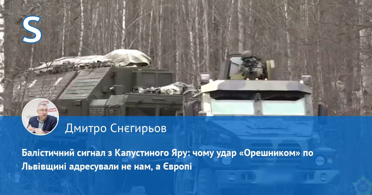 Звертаю увагу, що першим принциповим моментом у застосуванні ракети «Орешник» стало місце її пуску. Йдеться про полігон «Капустин Яр» на території РФ, а не про Республіку Білорусь. Це має ключове значення для розуміння військово-політичного контексту атаки.