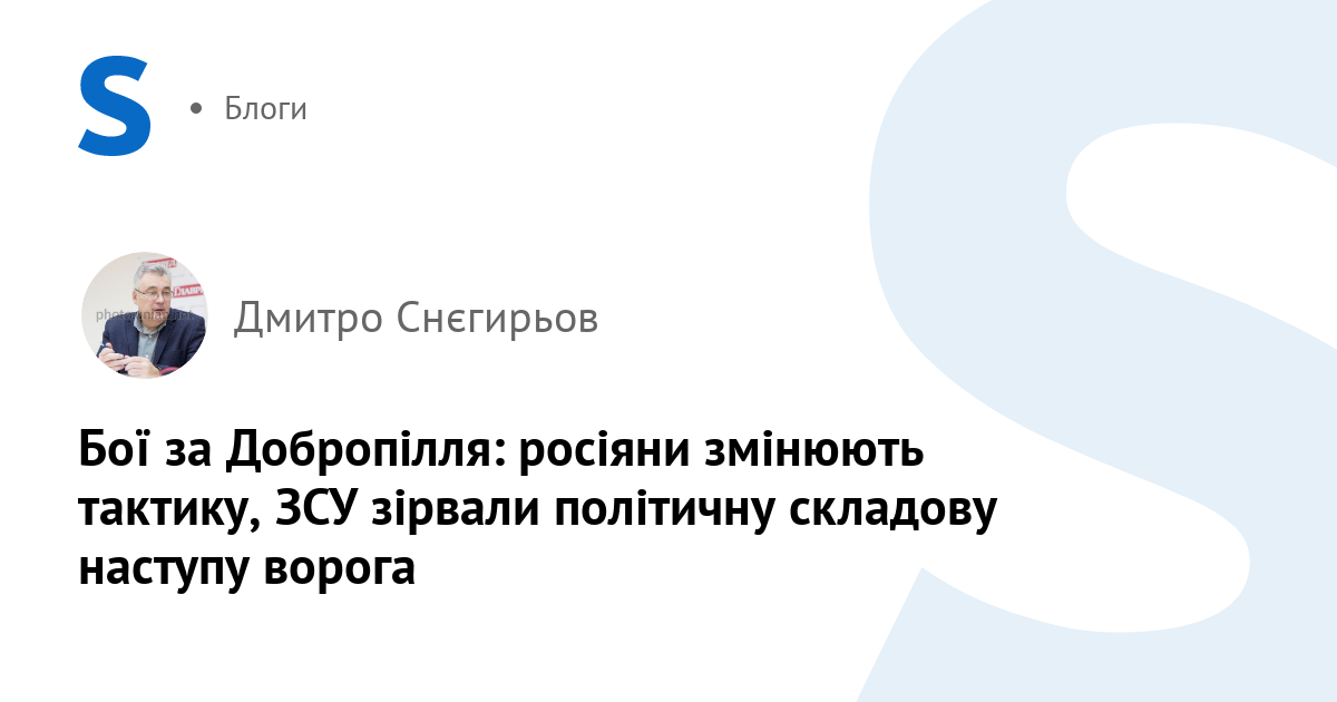 Звертаю увагу, що Силам оборони України вдалося зірвати політичну складову наступу російських військ на Добропільському напрямку.