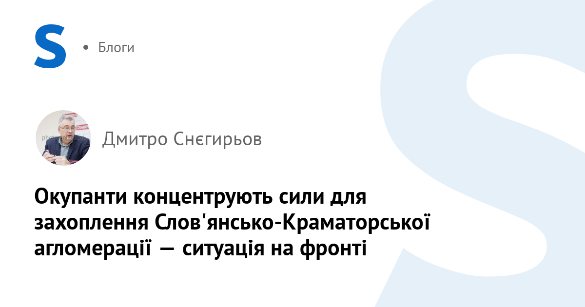 Стратегічним завданням противника є повна окупація Донецької області. Ворог посилює комбіновані атаки на найбільші міста-фортеці Донбасу: Слов'янськ, Краматорськ, Костянтинівку та Дружківку. Територія міських та індустріальних забудов чотирьох найбільших міст Слов'янсько-Краматорської агломерації у понад чотири рази перевищує площу Бахмута та більш ніж у сім разів — площу Покровська.