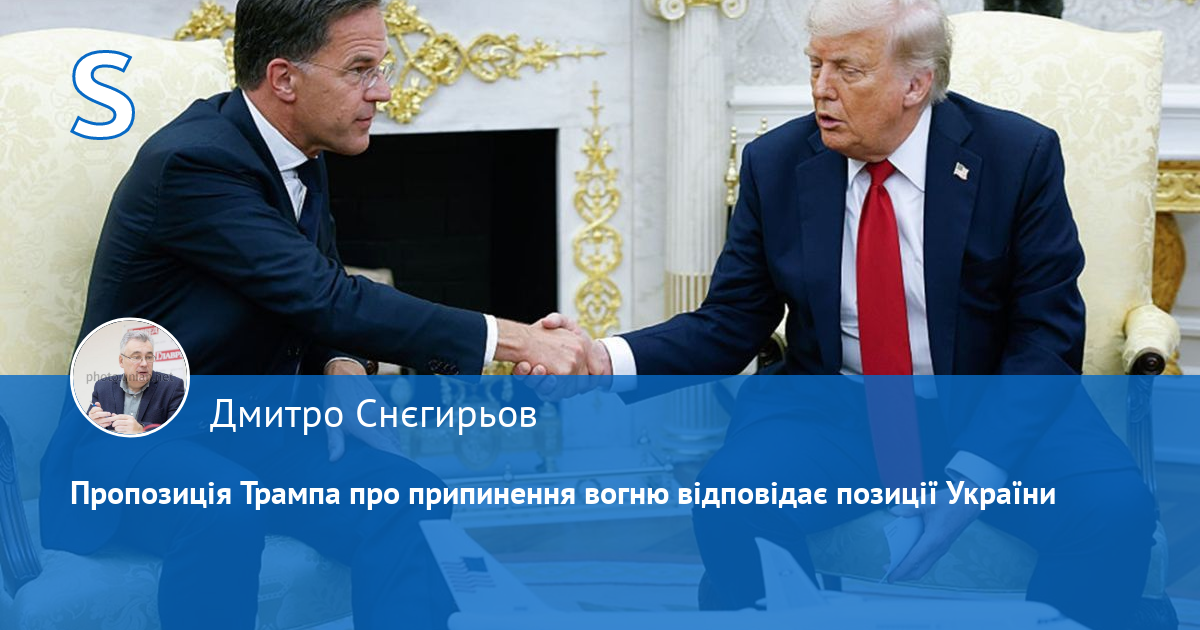 Пропозиція Трампа повністю відповідає позиції української сторони. Це припинення вогню з урахуванням поточної ситуації на лінії бойового зіткнення. А я нагадаю — 33% Донецької області контролюється Силами оборони України.