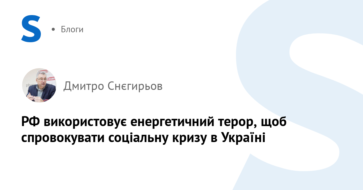 Росія прекрасно розуміє, що прорвати українську оборону на лінії бойового зіткнення вона не може. Тому єдиний, на їхню думку, результативний метод тиску — це удари по портовій, газовидобувній та енергетичній інфраструктурі. Разом з тим удари наносяться не тільки по електростанціях, але і по підприємствах, що забезпечують їх ресурсами. Вони б'ють по вугільних підприємствах, які постачають ТЕЦ енергетичним вугіллям. Останні атаки по об'єктах у Дніпропетровській області призвели до зупинки шести підприємств — і це в умовах найжорстокіших морозів. Удар по підземних газових сховищах у Львівській області — це спроба паралізувати українську енергетику і не дати можливості працювати тепловим електростанціям, що використовують газ.
