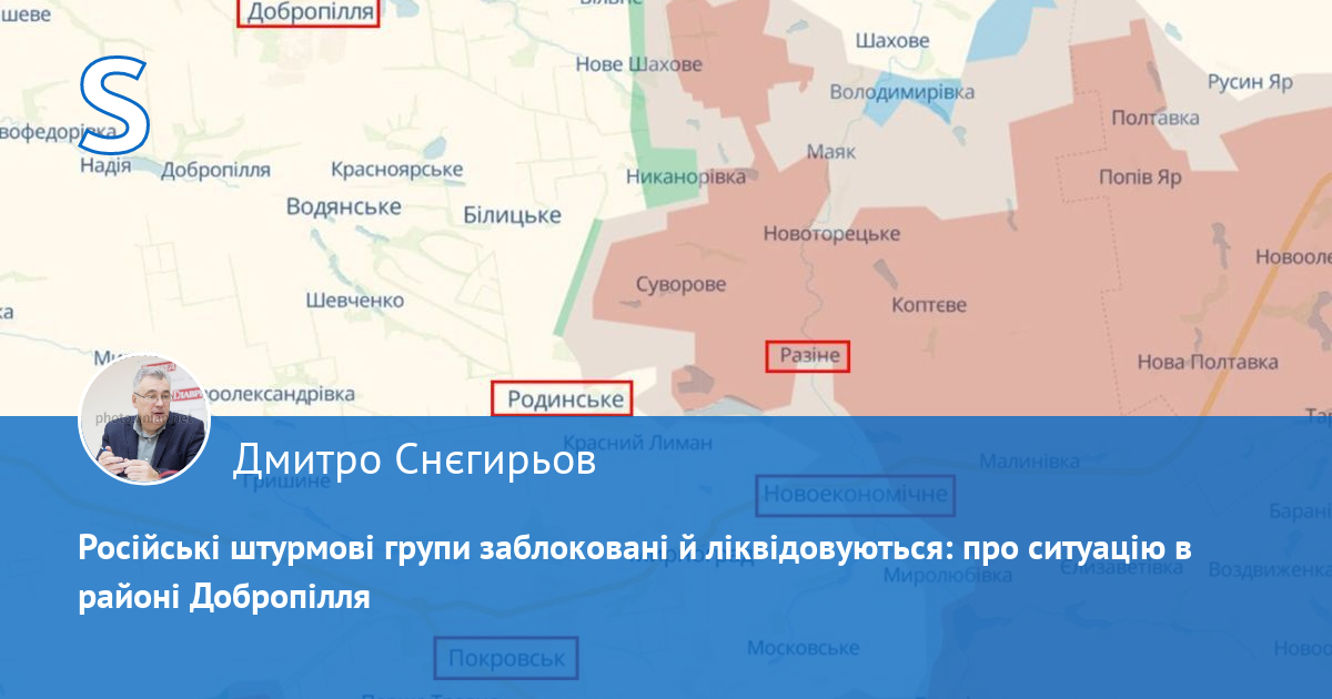 Нагадаю, що на Покровському напрямку ЗСУ деокупували два важливих населених пункти — Новоекономічне і Удачне. Цими успішними контрнаступальними діями Сили оборони України, на мою думку, зняли з порядку денного питання можливостей організації оперативного оточення вже безпосередньо російськими окупаційними військами на Покровському напрямку.