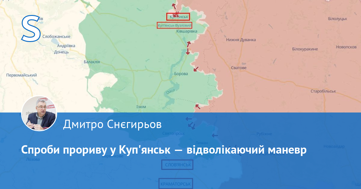 Дії російських окупантів у районі Куп'янська мають саме інформаційний характер. Тобто росіяни хочуть показати, що удар по Куп'янську — це і є основний напрямок їхнього наступу. Це класична схема «тисячі порізів» — одночасне завдавання ударів по декількох напрямках з метою відволікання оперативних резервів ЗСУ з ключових напрямків російського наступу, а це — Донецька область.