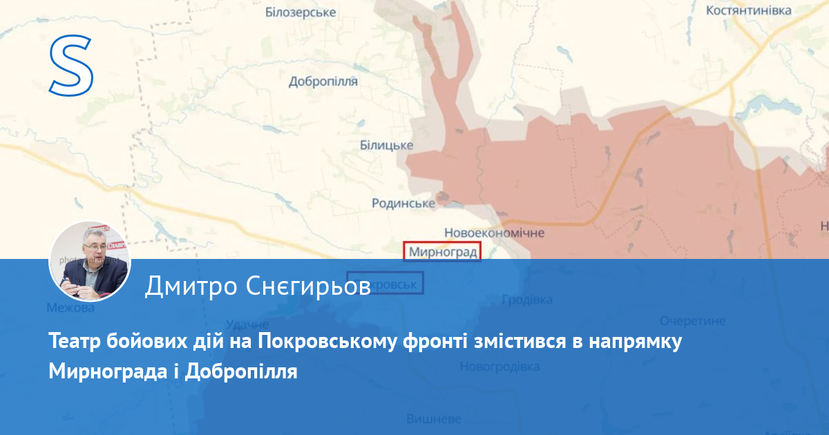Театр бойових дій змістився на фланги Покровського фронту — в напрямку Мирнограда і Добропілля. Збройні сили РФ намагаються вийти до траси в районі населеного пункту Родинське, щоб перерізати єдину асфальтовану дорогу. Попри складну обстановку на Покровському напрямку і безпосередньо біля міста Покровськ, говорити про те, що російські окупанти вже мають значні тактичні успіхи в Покровську, не можна.