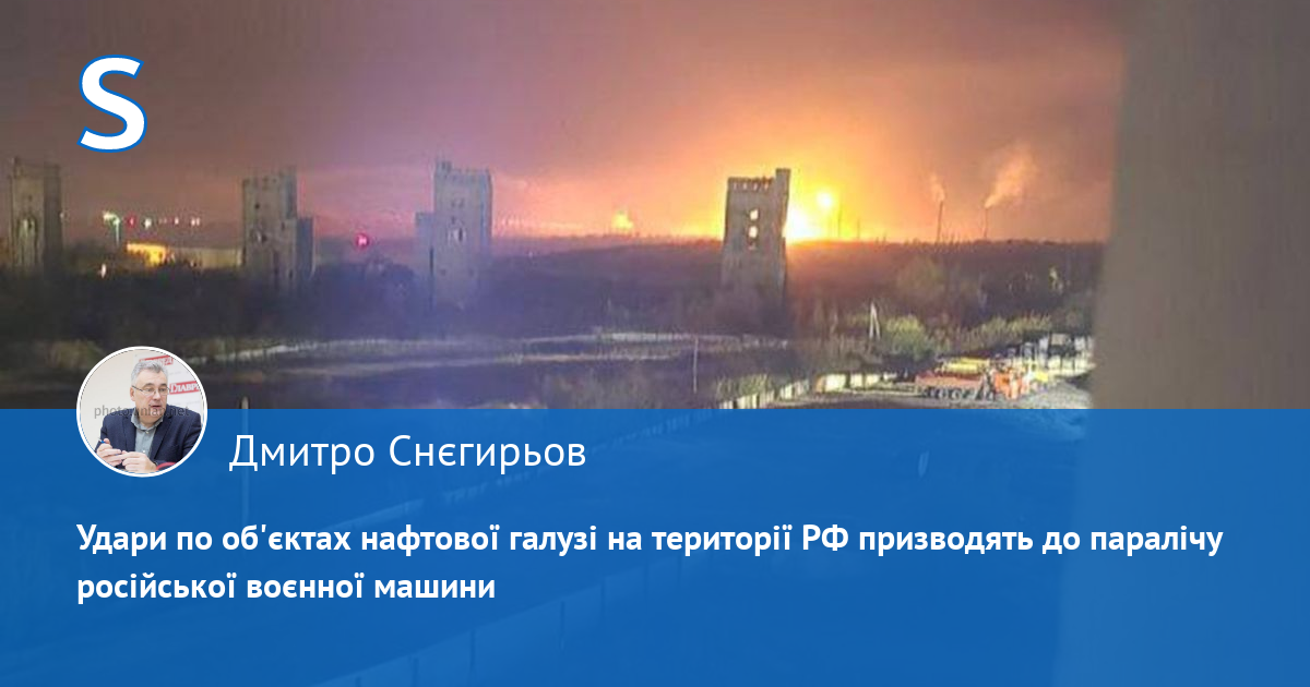 Сили безпілотних систем вразили Новокуйбишевський НПЗ у Самарській області. Це 3% загального обсягу по Російській Федерації. Але й основний момент, це те, що підрозділи Сил спеціальних операцій вразили об'єкт магістральної транспортної інфраструктури. Йдеться про лінійно-виробничу диспетчерську станцію «Самара». А це вже нафтопровід, це виробнича станція, де відбувається змішування високо- і низькосірчистої нафти з різних родовищ на території Російської Федерації. І, відповідно, формується так званий експортний склад нафти Urals, до 50% від загального обсягу експорту Російської Федерації. Удари по даній станції фактично зривають можливості Російської Федерації по виробництву, перекачуванню нафтопродуктів і відвантаженню кінцевому споживачеві готової продукції.