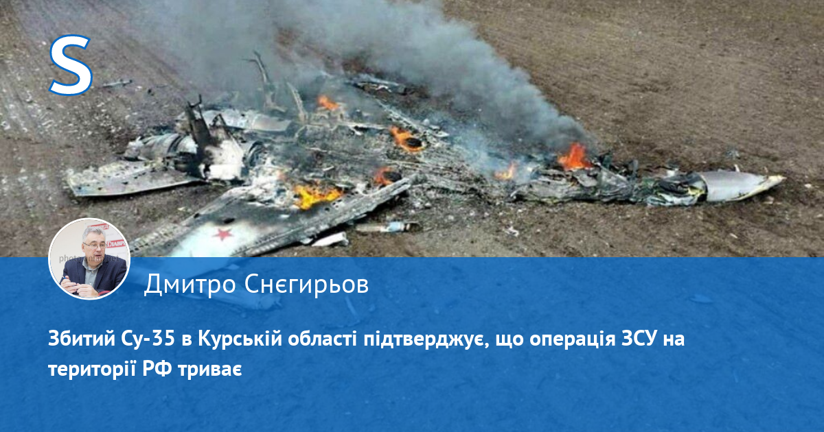 Сили оборони України днями збили російський багатоцільовий надманевровий винищувач Су-35 на Курському напрямку. Це говорить про те, що операція Збройних сил України (ЗСУ) не тільки не завершена, вона триває. Це також свідчить про розширення присутності Сил оборони України в Курській області.