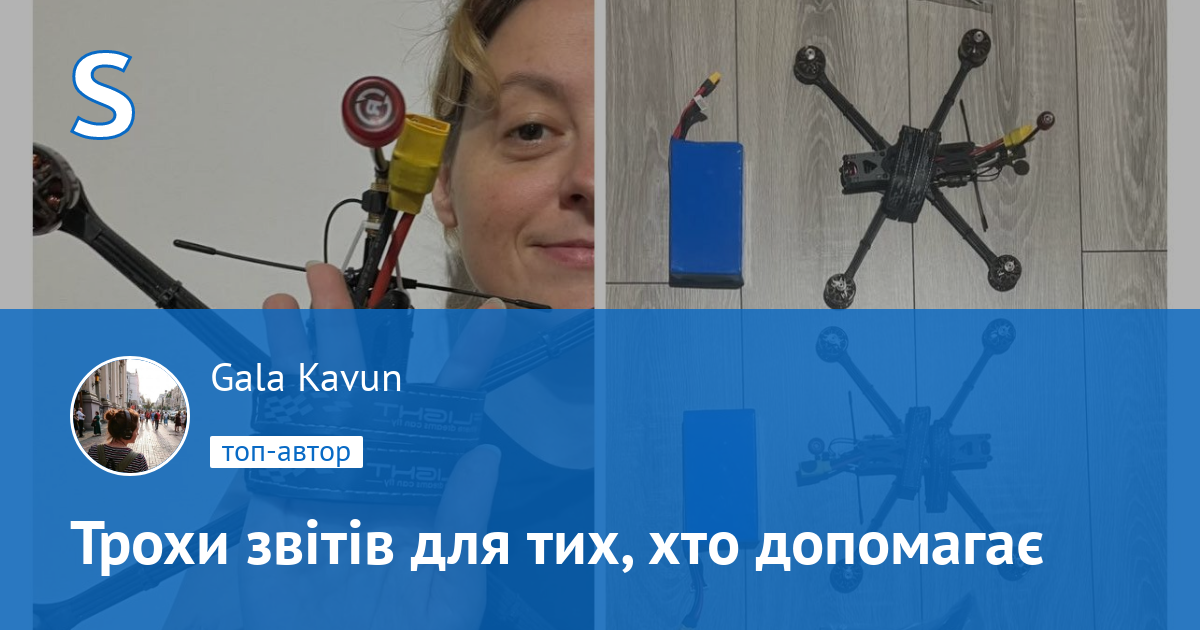 Нещодавно також за допомогою одного небайдужого громадянина закрили збір на рушницю для збиття дронів, який форсила Дарина Крук. О, це було справжнє щастя, бо я знаю, як важко, коли тягнуться ці довжелезні збори, яким немає кінця-краю.