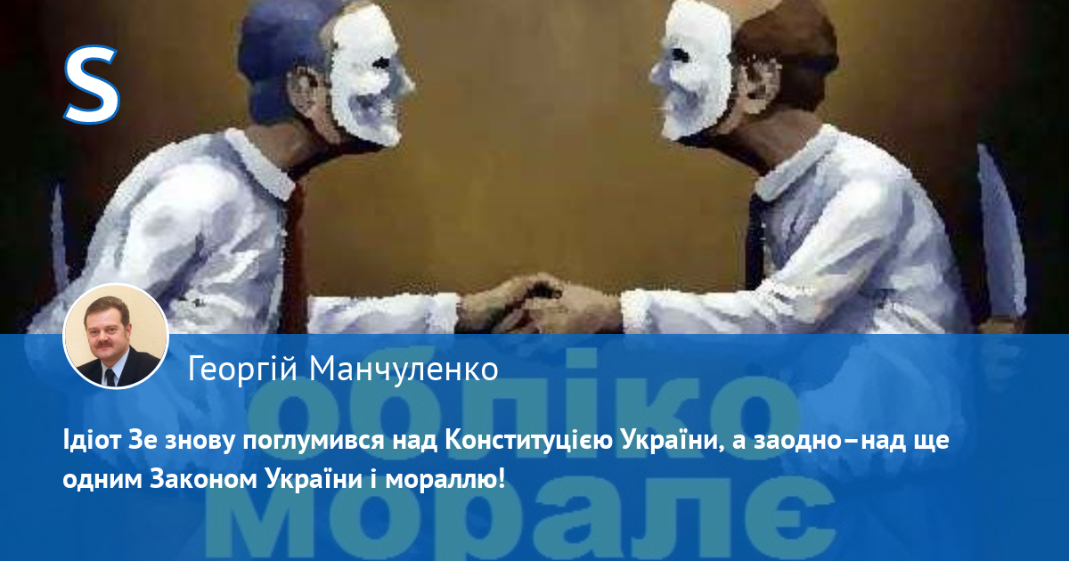 Ось так головний «герой» моєї попередньої статті «4-разовий ухилянт від захисту України Зе виявив, що цей захист є нормою Конституції України» ідіот Зе знову поглумився над Конституцією України, а заодно – над ще одним Законом України і мораллю!