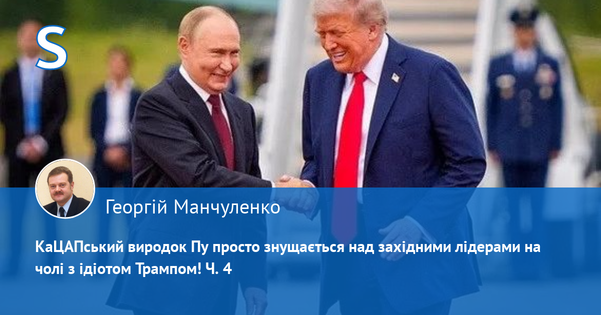 "Я не зробив цього перед ними, я вважав, що це було б зневажливо до Президента Путіна (а те, що це було зневажливо до присутніх західних лідерів, ідіоту Трампу наплювати, оскільки для нього важливіше проявити повагу до москальського виродка Пу, котрий його дійсно зневажає, як показано в параграфі 8, відкинувши навіть запропоноване Дональдом Трампом та озвучене його представниками ще під час переговорів у Джидді в Саудівській Аравії 11 березня 2025 року негайне запровадження 30-денного режиму припинення вогню на фронті із можливими наступними продовженнями, з чим Україна одразу й безумовно погодилася, але Трамп чомусь пішов назустріч каЦАПському виродку Пу і погодився на провокаційну ідею Пу одразу перейти до обговорення-укладання мирної угоди без припинення вогню – виділення та примітка Г. М.). Ви знаєте, що я б цього не зробив, тому що у них не найтепліші стосунки (натомість в ідіота Трампа й каЦАПського виродка Пу попри зневагу цього виродка до нього стосунки найтепліші – Г. М.). І насправді Президент Путін не розмовляв би з людьми з Європи. Я маю на увазі, що це було частиною проблеми (ідіот Трамп тут пересмикує, адже Пу насправді й не мав із ними розмовляти, адже то була їхня – Трампа та московитського виродка Пу, котрого він так шанує, – двохстороння розмова – Г. М.)", – додав Президент" («ЄП": "Трамп не дзвонив Путіну у присутності євролідерів, щоб не зневажити його", 19 серпня 2025 року, 16:38).