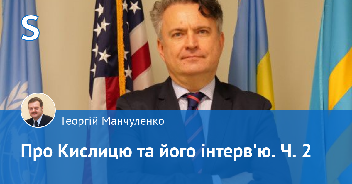 Тому в підсумку маємо кілька висновків, у котрих немає нічого мого суб'єктивно-особистісного, бо вони випливають із об'єктивно-сухих фактів параграфа 2, що такий досвідчений кадровий/кар'єрний дипломат, яким є Сергій Кислиця відповідно до параграфа 1,