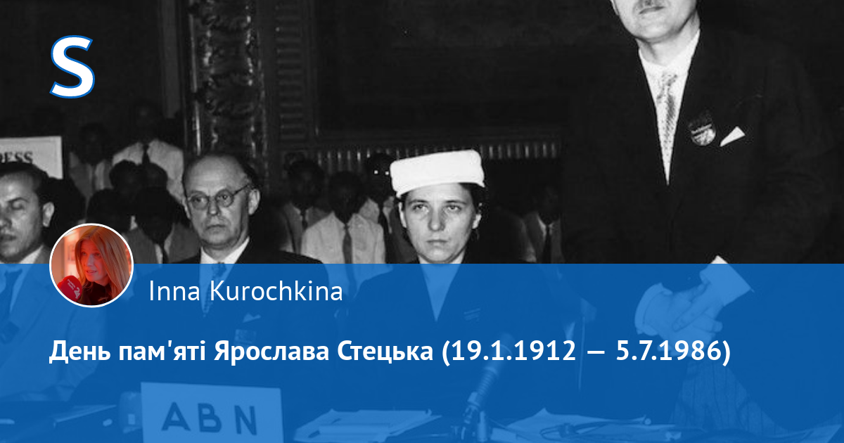 Сьогодні день пам'яті Ярослава Стецька (Підлісецький; 19. 01. 1912, Тернопіль — 05. 07. 1986, Мюнхен, Німеччина), світла йому пам'ять. Для мого дідуся, а отже і для мене та моєї родини, він був людиною, яка представляла уряд Вільної та Незалежної України на заході під час СРСР і до кінця свого життя боролася з імперією за державність України