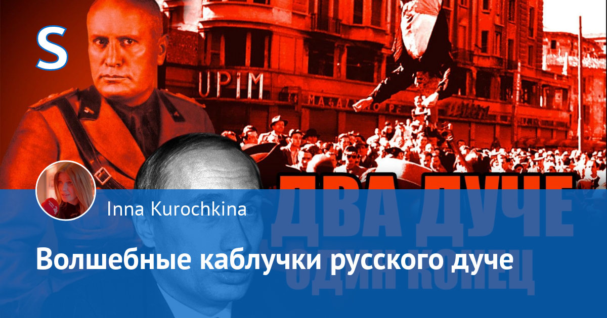 Режим Муссолини продержался 35 лет, при том, что Рим стал центром новой эстетики. У русского дуче Путина нет ничего своего, все украдено в других странах и культурах. Русский турист не хочет отдыхать на просторах необьятной России, а пробивается в Италию сквозь препятствия. Конец Путина близок, и его волшебные каблучки дергаются все сильнее