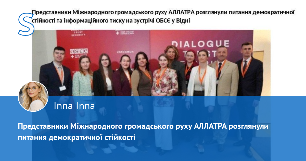 ВІДЕНЬ, Австрія – 16–17 березня 2026 року Додаткова нарада ОБСЄ з питань людського виміру на тему «Законотворчість для демократичної стійкості» слугувала платформою для обговорення нових викликів демократичному врядуванню. Представники Міжнародного громадського руху АЛЛАТРА зробили свій внесок у діалог, виступивши на двох пленарних засіданнях та організувавши спеціальний супутній захід.