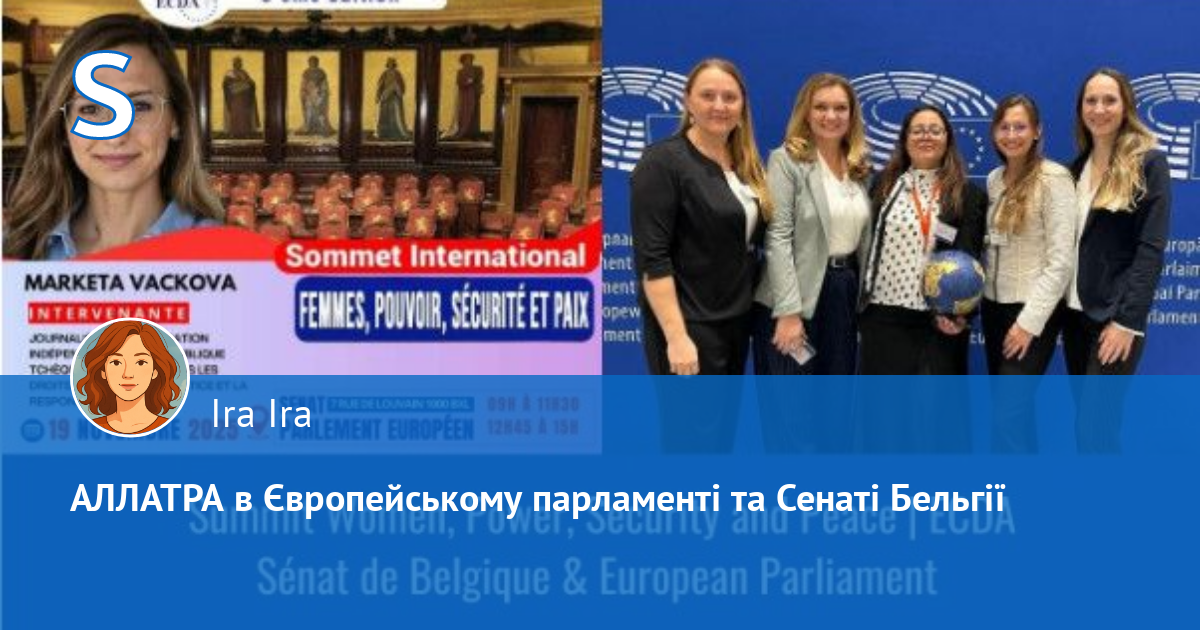 19 листопада 2025 року представниціМіжнародногогромадськогорухуАЛЛАТРА з ЧеськоїРеспублікитаСловаччинивзялиучастьуСаміті«Жінки, влада, безпекатамир», щовідбувсявЄвропейськомупарламентітаСенатіБельгіївБрюсселі. Програма, організована під егідою ECDA — Європейського центру розвитку, геостратегічних досліджень та аналізу, — представила насичений та всебічний порядок денний, присвячений жіночому лідерству, миробудівництву, стійкості та захисту прав людини.