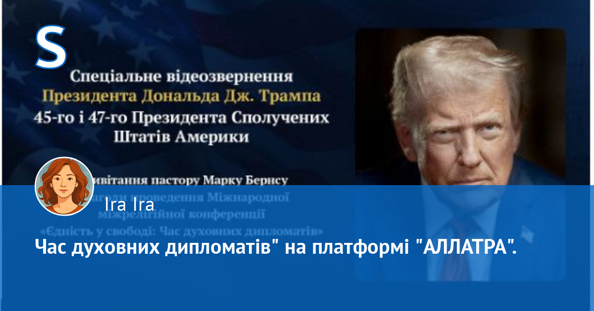 Спеціальне відеозвернення Президента Дональда Дж. Трампа пастору Марку Бернсу з нагоди Міжнародної міжрелігійної конференції «Єдність у свободі: Час духовних дипломатів» на платформі «АЛЛАТРА».