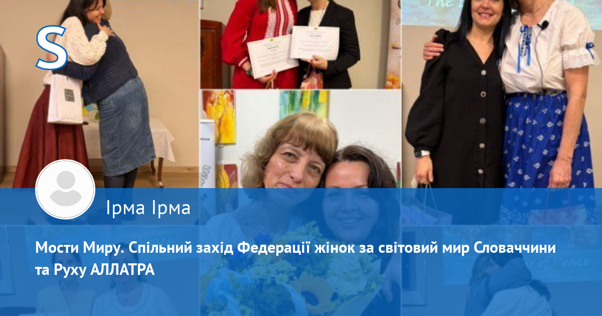 14 березня у Братиславі (Словаччина) відбувся міжнародний захід «Мости миру», організований Федерацією жінок за світовий мир Словаччини спільно з представницями Міжнародного громадського руху «АЛЛАТРА». Ініціатива об'єднала жінок з різних країн, зокрема з України та Словаччини, для зміцнення діалогу, взаємопідтримки та гуманітарної співпраці.