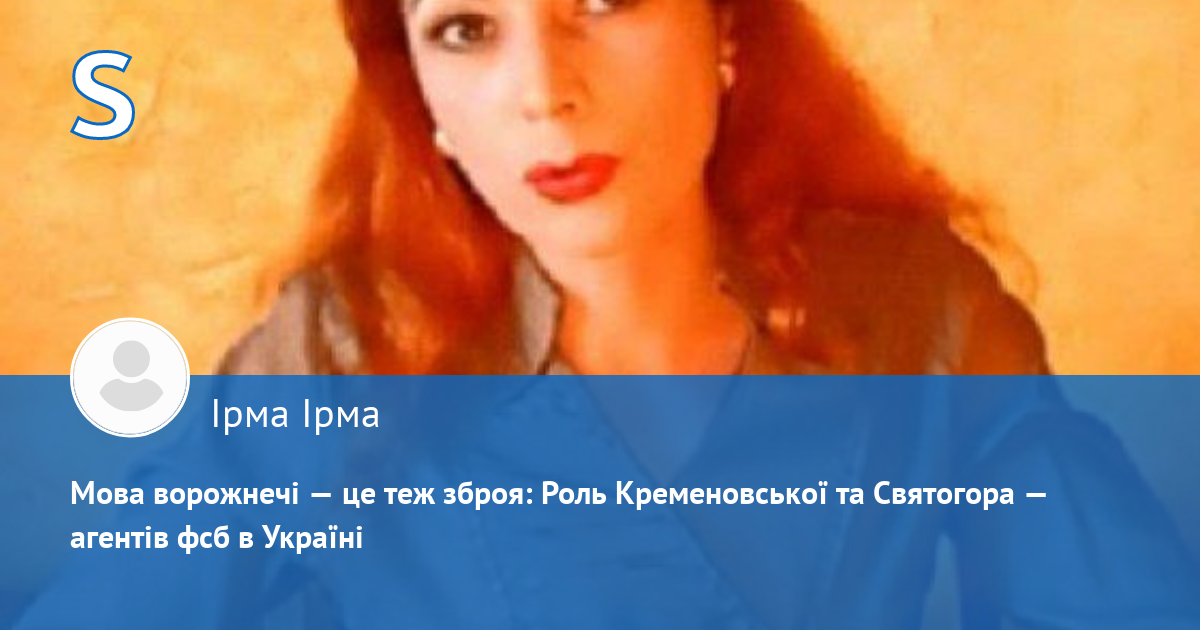 Як самі бачимо, #Кременовська і #Святогор працюють на ФСБ, мутять воду, розгойдують країну і відволікають спецслужби сектантською маячнею. Усе за московською методичкою РАЦИРС. Іх ціль: Налякати, навішати ярлики «секта» і влаштувати хаос.