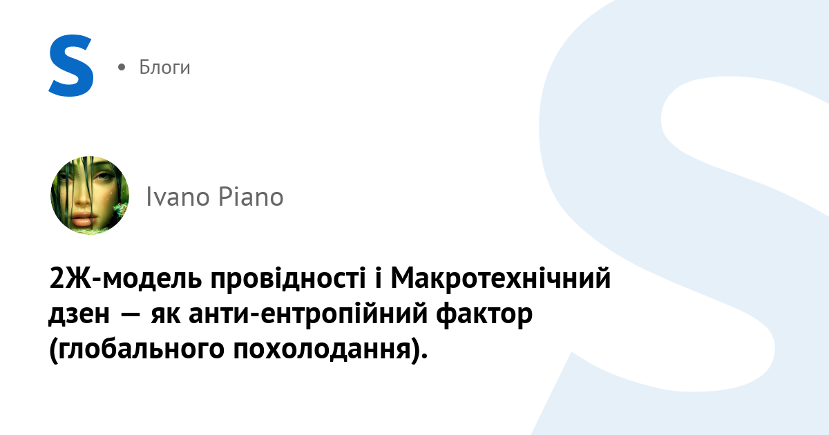 P.S. Може треба було сказати у "вступі" чи передмові, що тут йдеться про потокове мислення, довготривалу довгомірну медитацію — мислення "слідами руху", траєкторіями переміщення, — мислення, що заздалегідь включає в себе і часовий вимір, і довготривалу "емоційну пам'ять". Іншими (теперішніми) словами — логістику і емоційний інтелект, що включає в себе і фактори натхнення, і болючу пам'ять про його придушення і знищення цинічними адептами "Життя Реального" — курвивої тюрми і могили, порубаної на окремі кадри, химерну мозаїку курвивого "плюралізму" (отсєдова досєдова — далі все "нереальне": "смотрю в кнігу — віжу фігу").. Відтак вона, 2Ж-наука, чи він, Макротехнічний дзен на її динамічній основі, нагадує вам про деякий "монізм", об'єднуючий анти-ентропійний фактор, який протистоїть глобальному потеплінню та інфрачервоній ентропії.