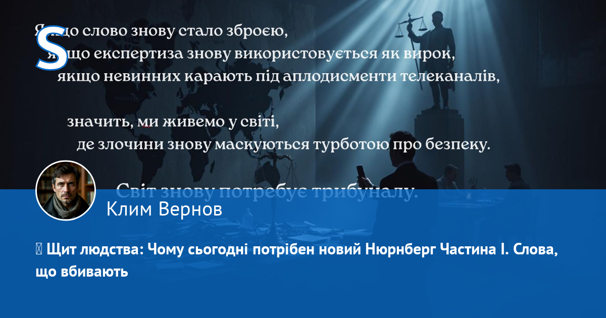 В історії людства є особливі позначки, після яких усе вже не може бути як раніше. Нюрнберзький процес — одна з них. Він показав світу не лише обличчя злочинців. Він показавметод. І вперше в історії визнав: слово може бути зброєю масового знищення. Радіоефір, газетна колонка, брошура можуть убити не гірше за кулю, якщо вони націлені на свідомість.