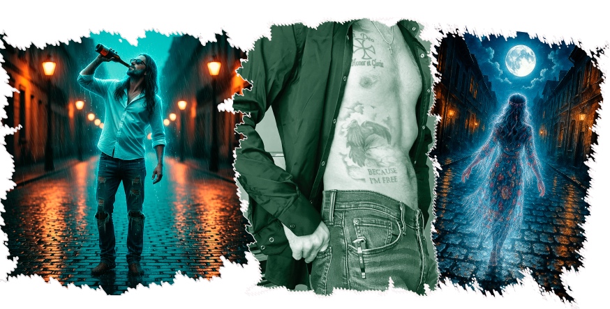 Що маю на увазі? Включай уяву – порвані полатані джинси, майка з „буржуазной надпісью“ – 'Uriah Heep', волосся до пояса, „фєнєчки“ на запястях рук, обов'язкові хрест і „пацифік“ на шиї… Нічого аж такого?.. Ну – так. Давай опишу всіх решта навколо. Якісь коричневі, але у всіх однакові, штани, якась, але у всіх однакова, сорочка, якесь, але у всіх однакове, взуття. Ну і вираз обличчя. У нас – це неприкритий виклик, у решти – якась така лєва заклопотаність. По виразу обличчя – воно йде проектувати атомну електростанцію, чи на який партійний форум с комуністамі Болгарії, а по зовнішньому вигляду – ханурік Ґавріла, котрий би може і випив, але страшно, бо ще за таке пезди дадуть…