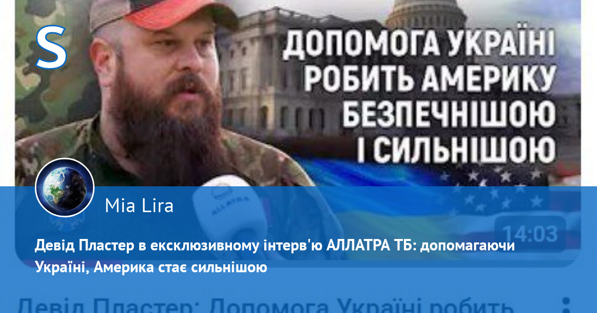 Ведуча АЛЛАТРА ТБ: Зараз ми перебуваємо у Вашингтоні, округ Колумбія. І разом із нами Девід Пластер, американський ветеран і людина, яка є великим прихильником України та українського народу. Сьогодні виповнюється четверта річниця повномасштабного вторгнення рації в Україну, а фактично ця війна триває вже 12 років. Девід Пластер підтримує Україну з 2014 року. І наскільки я знаю, ви переїхали жити в Україну ще 2012 року. Ми дуже раді можливості поспілкуватися з вами. Почнімо з запитання: як саме сталося, що ви почали підтримувати Україну і що спонукало Вас узяти на себе зобов'язання підтримувати український народ?